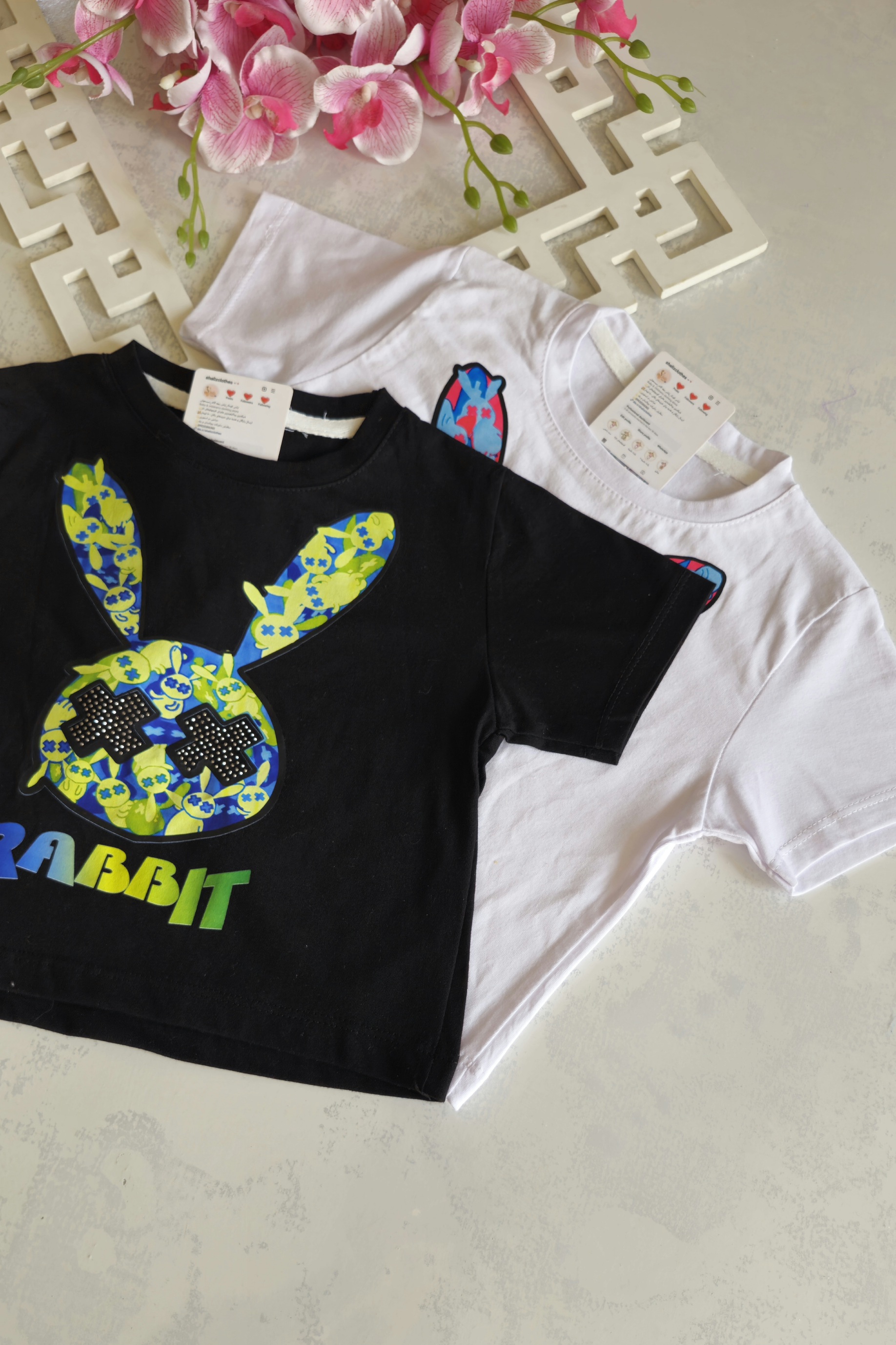 تیشرت مدل کراپ با طرح برجسته و نگین کاری جنس نخی