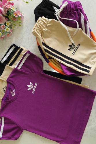 تیشرت شلوارک گل گلی با طرح برجسته نخی
