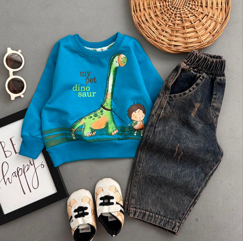 بلوز شلوار طرح دایناسور با شلوار جین اعلا