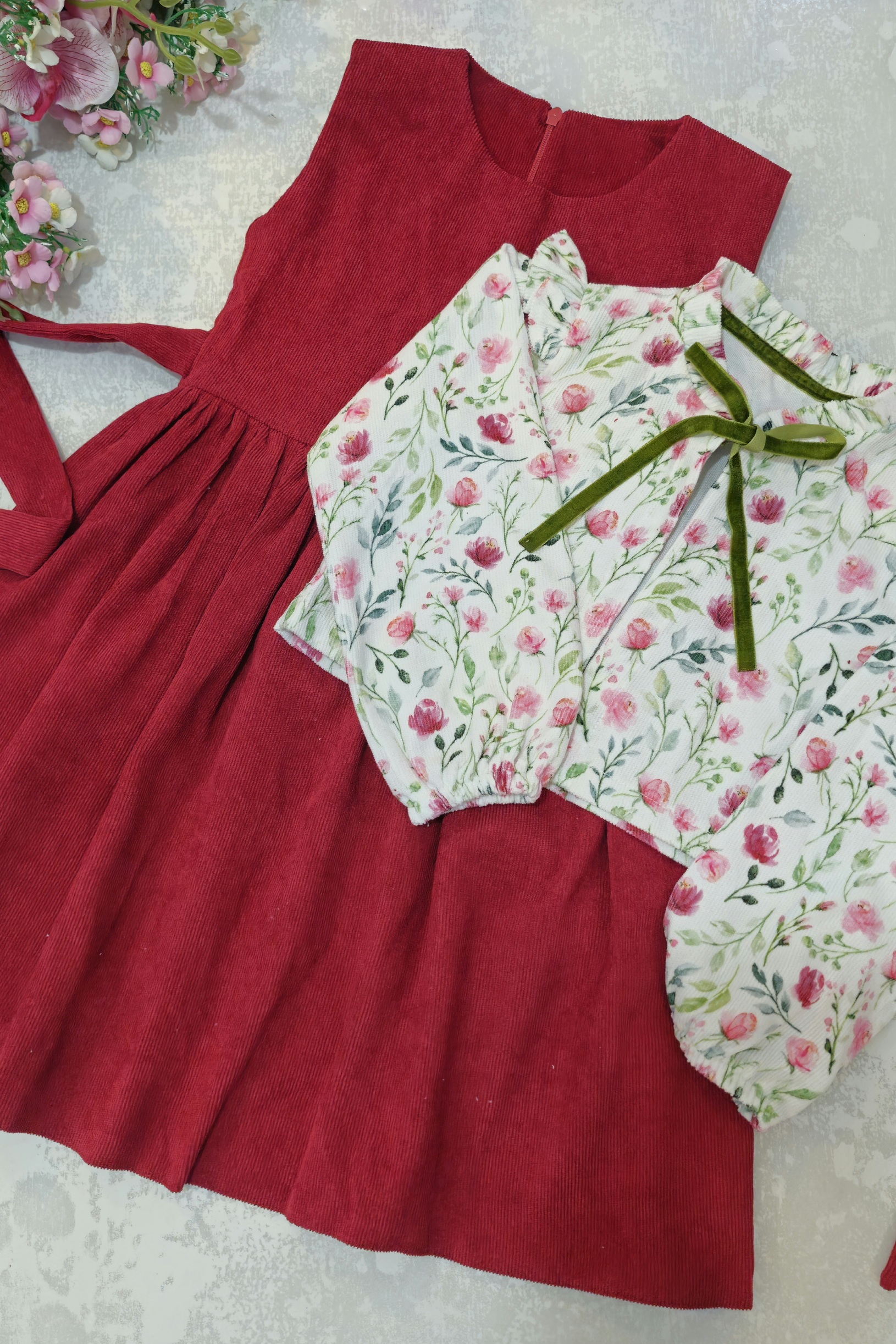 ناموجودکت و سارافون جنس مخمل کبریتی ریز با کت آستین کش طرح گل